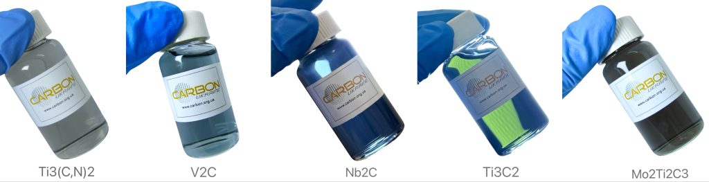 - MXene paste (V2C ,Ti3C2 aqueous solutions or in organic solvents), delaminated, multilayered